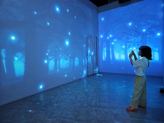 공간 전체를 스크린화하여 장면 전환에 따라 분위기가 변화하는 몰입형 영상 환경을 구축했습니다.